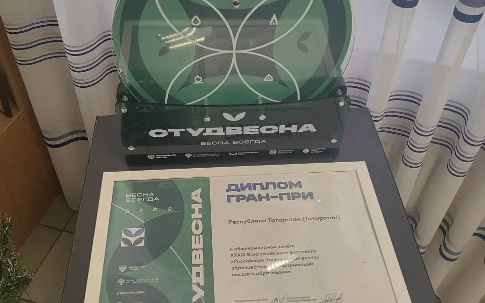 Масштабный проект «Марафон Победы»: Кубок Гран‑при XXXIII Всероссийского фестиваля «Российская студенческая весна» продолжает путешествие по высшим учебным заведениям Республики Татарстан. Этот трофей - воплощение творческих достижений и командного духа студенчества республики.
