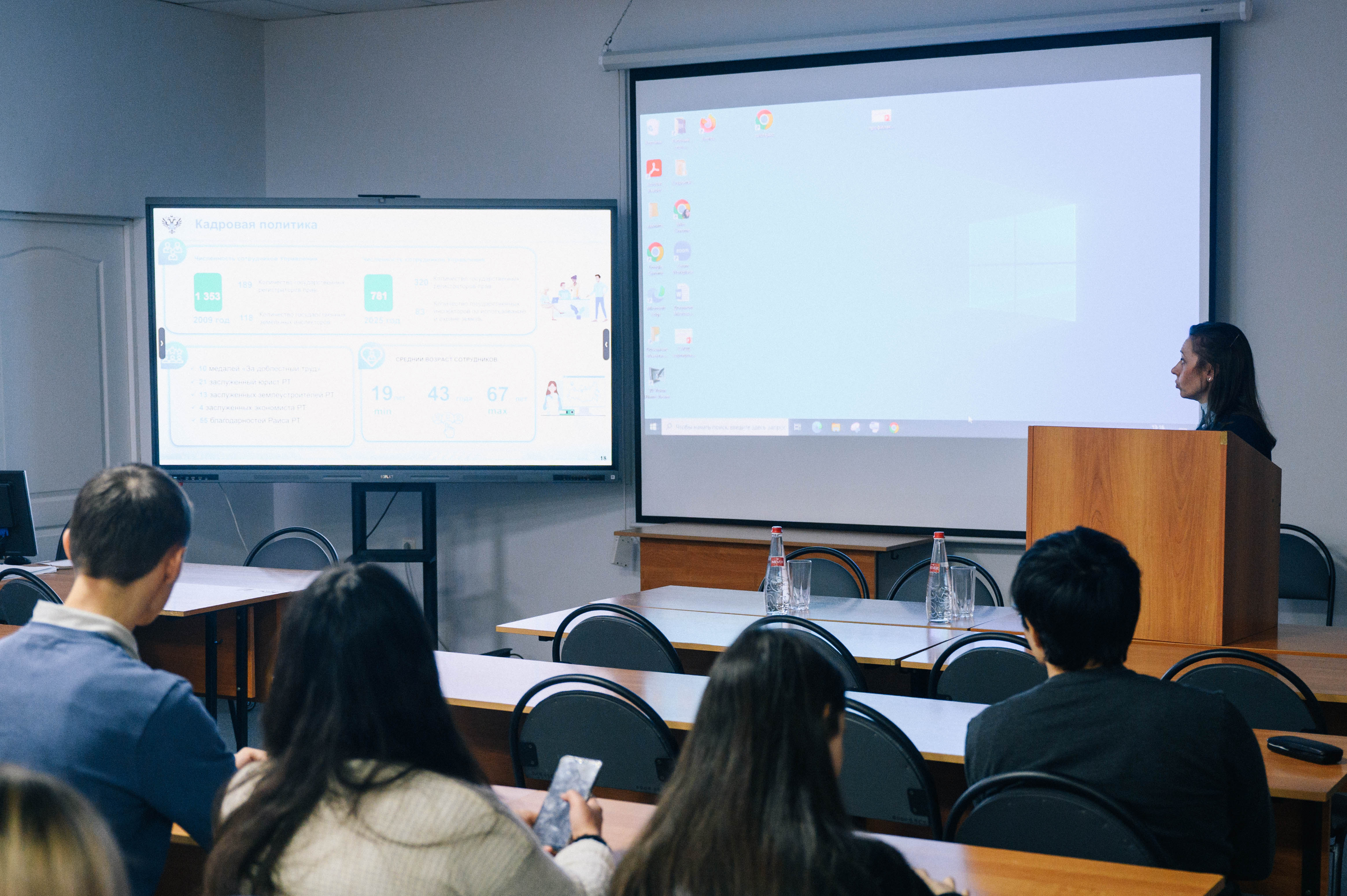 Состоялась встреча студентов старших курсов юридического факультета с представителями Управления Росреестра по Республике Татарстан. Особое внимание в ходе встречи было уделено вопросам трудоустройства, карьерного роста и профессионального развития сотрудников. И.о. начальника отдела государственной регистрации недвижимости Светлана Потапова рассказала обучающимся в вузе об основных полномочиях и направлениях деятельности Росреестра Татарстана, результатах и достижениях, выстраиваемой работе по взаимодействию с профессиональными участниками рынка недвижимости, а также общественной деятельности ведомства. Подобные встречи очень полезны, так как они помогают студентам получить более полное представление о профессиональной деятельности по конкретному направлению и ориентироваться в выборе будущей профессии. Кроме того, это отличная возможность для студентов узнать о вакансиях и требованиях к претендентам, а также подготовиться к будущей профессиональной деятельности.
